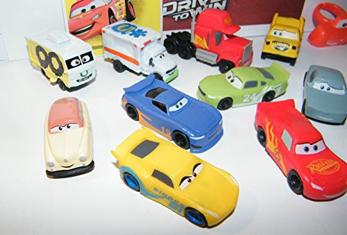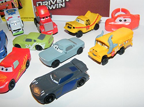 -. Feature : This fun party set of 14 includes 12 plastic cars, one sticker, a collectible Cars ring! / They feature popular Cars 3 Movie characters and are great for any Disney fan! / The all plastic cars have no moving parts, are about 2 inches long and an inch tall. / These are nicely shipped in plastic as pictured with nobox. Please see all pictures. / This neat set is for children 4 and up and will be played with long after the party is over!