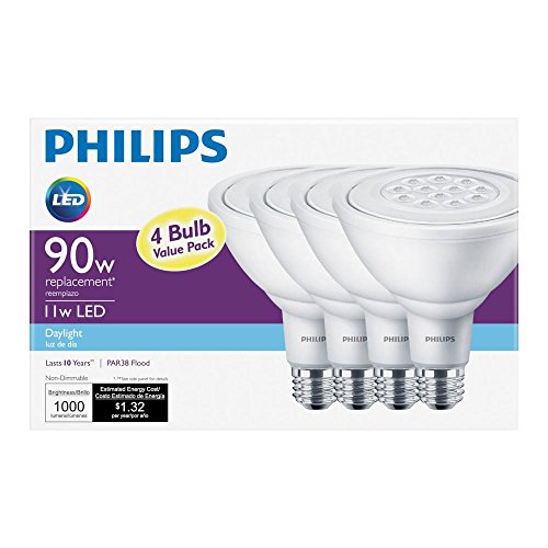 Philips LED Indoor/Outdoor Non-Dimmable PAR38 25-Degree Spot Light Bulb: 1000-Lumen, 5000-Kelvin, 11-Watt (90-Watt Equivalent), E26 Base, Daylight, 4-Pack