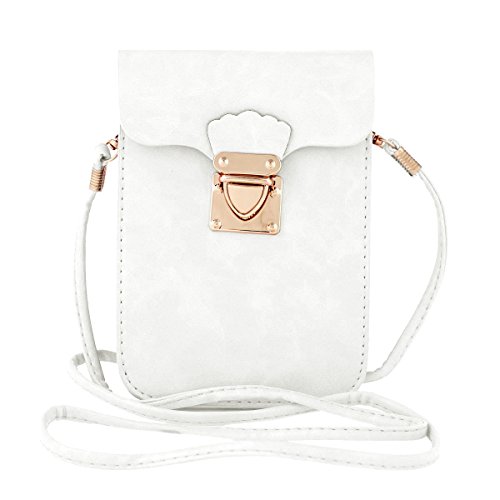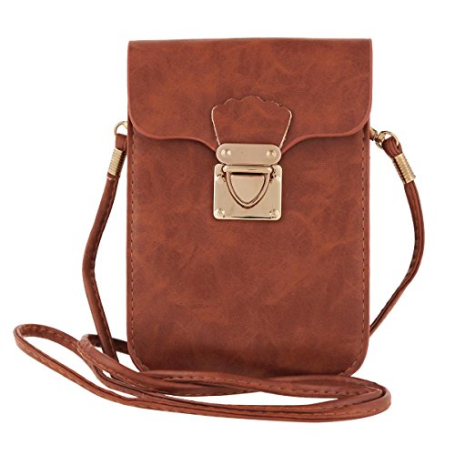 -. Brand : Damara -. ClothingSize : Small -. Department : womens -. Feature : This phone pouch features scalloped push lock on the flap. / Made of faux leather. / 2 interlayers inside to carry your phone and outdoor belongings. / Equipped with detachable crossbody strap. / Purse measurement app: 17 x 11.2 x 2cm (6.6 x 4.6 x 0.8 inches). -. ProductGroup : Shoes -. ProductTypeName : HANDBAG -. Size : Small -. Title : Damara Womens Scalloped Push Lock Crossbody Phone Holder