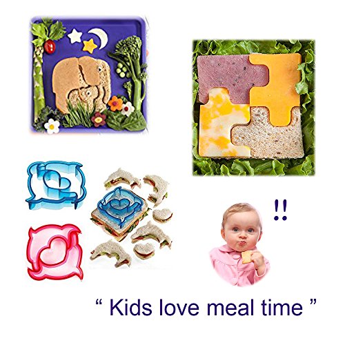 Tool Gadget Sandwich Bread Crust Cutters, 3 Packs, Cutest Molds, Cookie Pancake Cutters, Picky Eaters Encourager ,100% BPA free & Safe - Dolphin, Puzzle & Elephant,