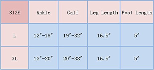 SIZE -- XL size. Ankle: 13"-20" Calf: 20"-33" leg length: 16.5" foot length: 5" (Please see the size chart illustrations.)