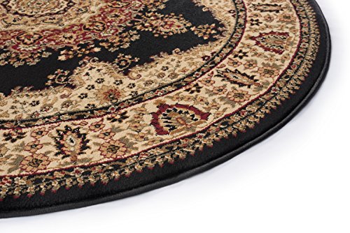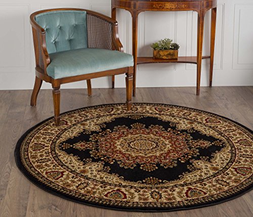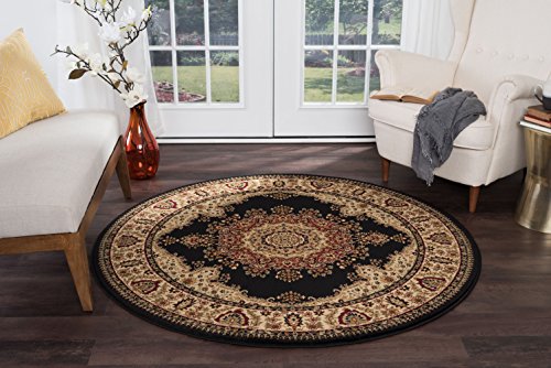 Black 5 ft. 3 in. Round Traditional Area Rug