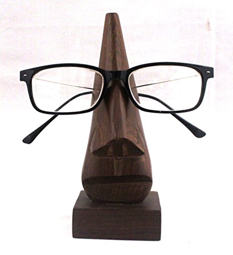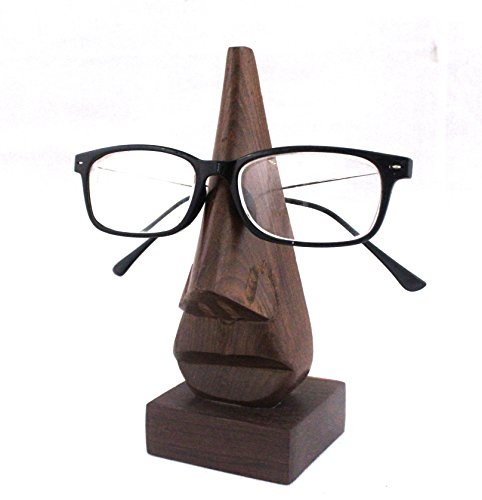 Handmade from authentic durable Indian rosewood & carved into the unusual shape of a nose. The eyeglass & spectacles holder rest on the nose, with the back securing them in place