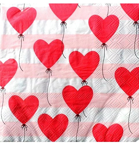 roobee by mara-mi 40 ct Cocktail Beverage Paper Napkins, Floating Heart Balloons