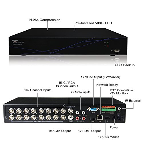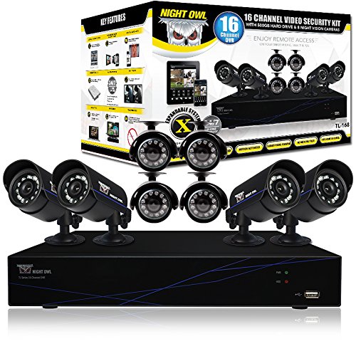 Night Owl Security TL-168 16 Channel Video System with 500 GB HDD, 8 Hi-Resolution Cameras (Black)