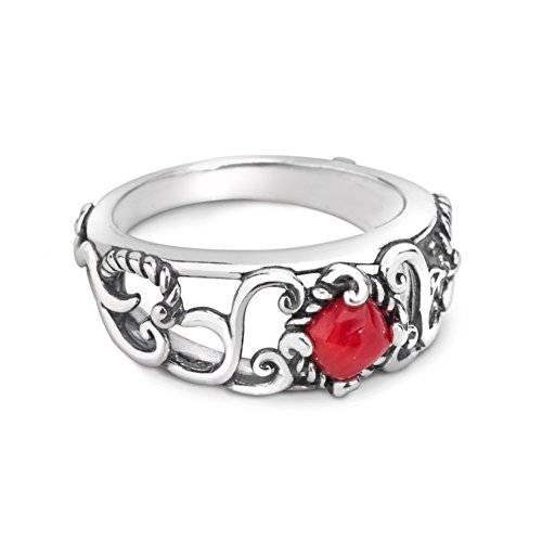 -. Feature : Genuine Red Coral and .925 Sterling Silver / Measures approximately 3/4" wide x 1/4" long / See Ruler View for accurate sizing. Silver may tarnish over time. / Handcrafted in America with lifetime warranty on all jewelry / Silver and rope design intertwine topped with fabulous gemstones of red coral for a pop of color.
