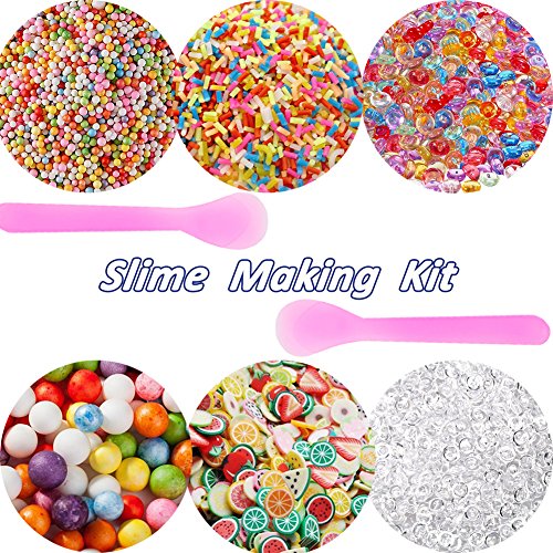 SECOWEL 6 Pack Slime Making Kit Supplies Including Fishbowl Beads, Foam Balls, Fruit Slices, Fake Candy Sprinkles and Spoons for Slime Making Art DIY Craft Party Decoration or Wedding