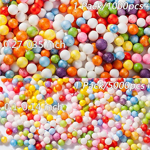 - Foam balls: 0.1-0.14 inches(5000 pcs+) & 0.27-0.35 inches(1000 pcs+). Perfect for gift box filling, glass bottles DIY, lazy sofa sets / cushions / pillow / all kinds of plush toys
