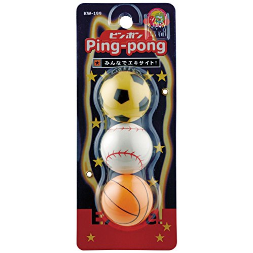 -. Feature : セット内容:卓球用ボールx3個 / ボールデザイン:サッカーボール柄・野球ボール柄・バスケットボール柄各1個 / 一般用 / ボールサイズ:約φ40mm / ボール重量:約3g / 材質:ポリ塩化ビニル / 生産国:中国