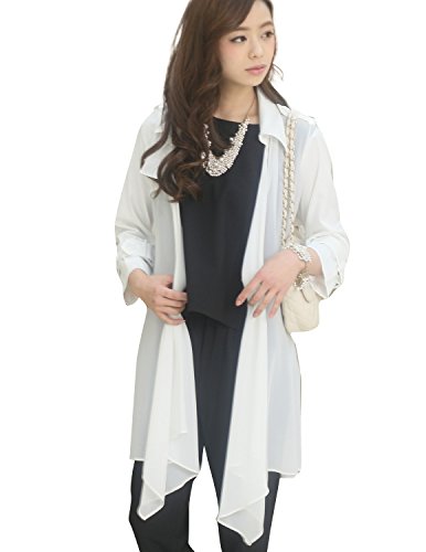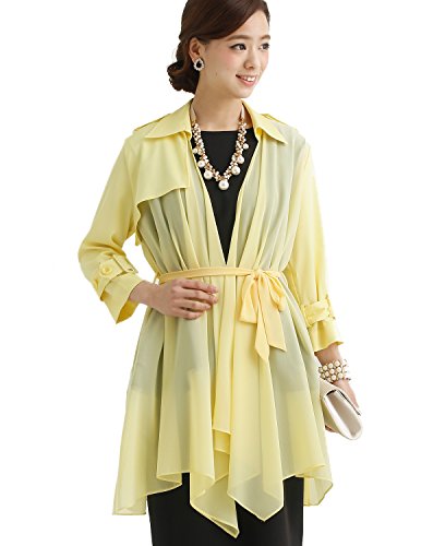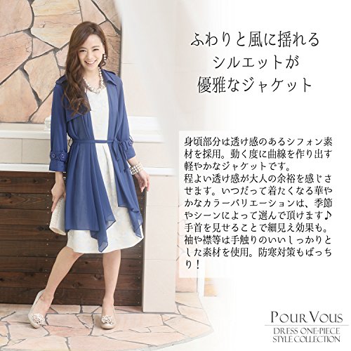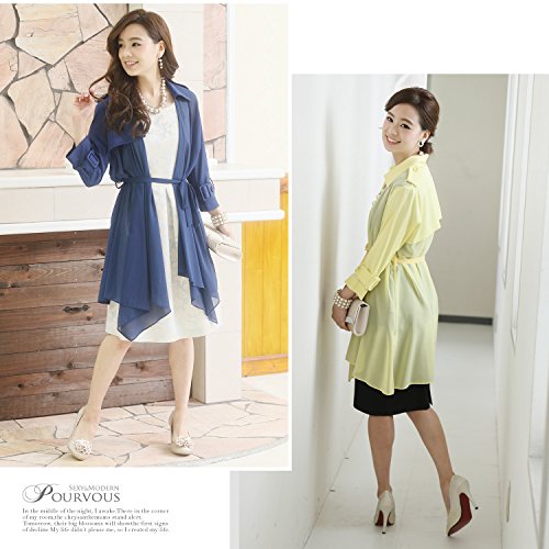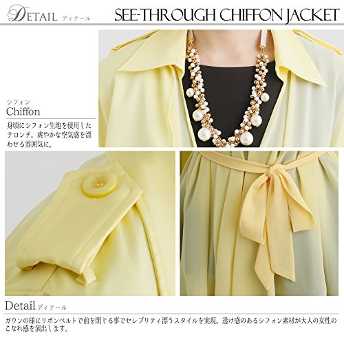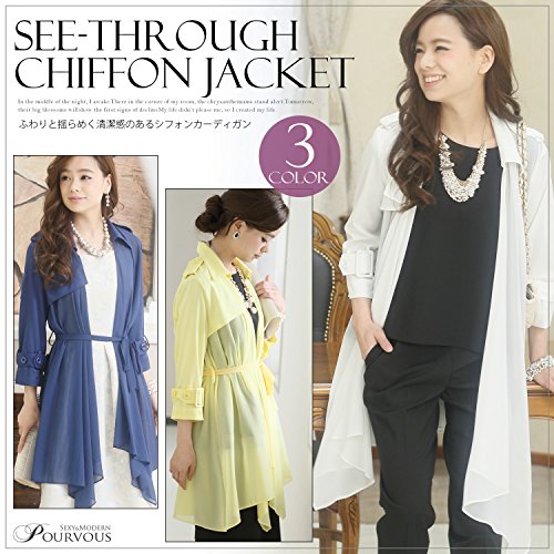 -. Feature : 【カラー】ネイビー,ホワイト,イエロー(透け感あり) 【素材】ポリエステル 60% レーヨン 35% ポリウレタン 5% 切り替え部分:ポリエステル 100% 【裏地】無し / 【サイズ】M/L 【伸縮性】無し 【ファスナー】無し 【付属品】ベルト / 【商品特徴】身頃部分は透け感のあるシフォン素材を採用。動く度に曲線を作り出す軽やかなジャケットです。