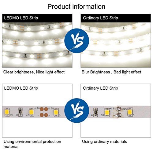 LED Strip Lights,LEDMO 2835 Flexible LED Light Strip 300LEDS 16.4 Ft 15Lm/LED Non-Waterproof Led Ribbon With Led Strips Light Connector(Daylight White)
