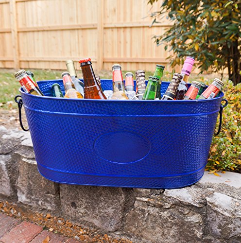 -. Brand : BREKX -. Color : Blue -. EAN : 0804482545932 -. Feature : The Heavy-Duty SeaSide Blue Creighton Pebbled Beverage Tub is among the highest quality beverage tubs on the market. The beautiful glazed finish creates a leak-proof and rust-resistant coating that insulates and keeps beverages ice cold for hours. Its size allows for about 30 bottles of beer or 8 bottles of wine. / Size: 23 inches x 13.5 inches x 10 inches / 30 bottle capacity / Material: Lead-Free, galvanized heavy-metal that prevents scratching / Enjoy this product in this beautiful weather with your family and friends! -. Label : BREKX -. Manufacturer : BREKX -. MPN : 12640 -. PartNumber : 12640 -. ProductGroup : Kitchen -. ProductTypeName : KITCHEN -. Publisher : BREKX -. Studio : BREKX -. Title : BREKX Blue Hammered Galvanized Beverage Tub & Party Ice Bucket - Large -. UPC : 804482545932