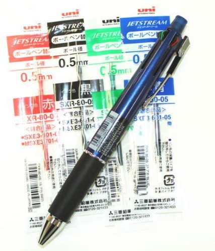Uni-ball Jetstream 4&1 4 Color 0.5 mm Ballpoint Multi Pen(msxe510005.9)+ 0.5 mm Pencil (Naby Body) & 4colors Ink Pens Refills &Strength & Deep & Smooth Uni 0.5mm HB Top quality Diamond Infused Leads [Nano Dia-40 Leads] Value Set