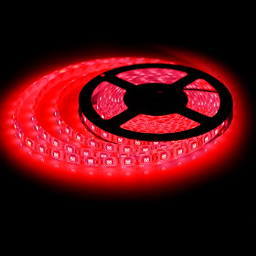 SUPERNIGHT 16.4 Feet 5 Meter Light Strip 300 Units SMD 5050 Red Led, Waterproof, 12V Flexible Rope Light, LED Tape, DIY Party Kitchen Bedroom Sitting Room, TV Backlighting, Bedroom, Bed and More