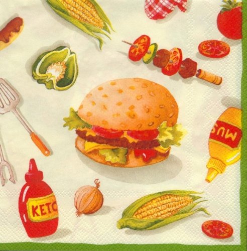Ideal Home Range 20-Count 3-Ply Paper Cocktail Napkins, Burger Party