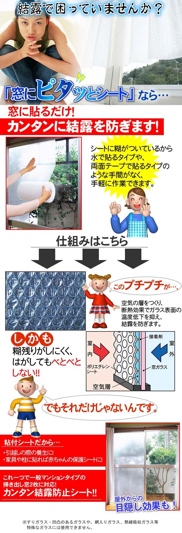 "Pittin to the window" is a dew condensation control article unnecessary unnecessary water and double-sided tape with glue stuck to bubble wrap (R).