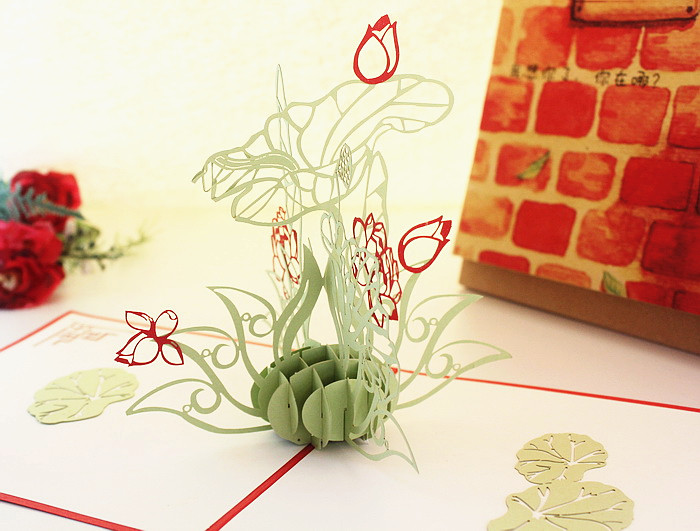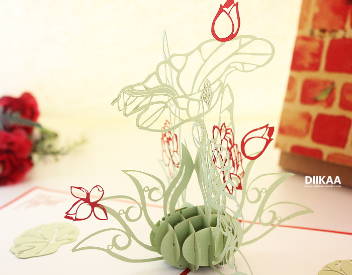 超大立体荷花 3D纸雕贺卡