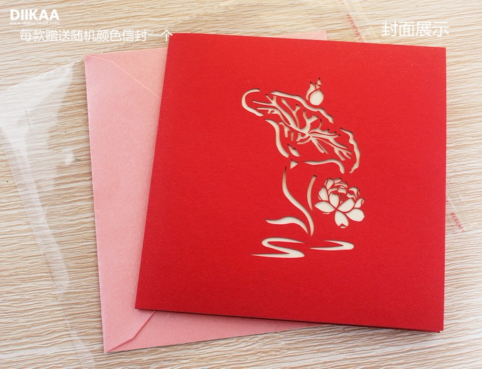 Oversized stereoscopic 3D paper lotus carved Greeting