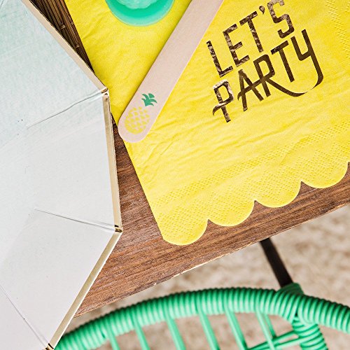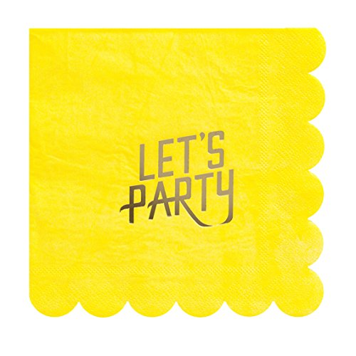 Fire and Creme Gold and Bright Yellow Let's Party Large Foiled Scalloped Paper Napkins 13 x 13" - Pack of 16