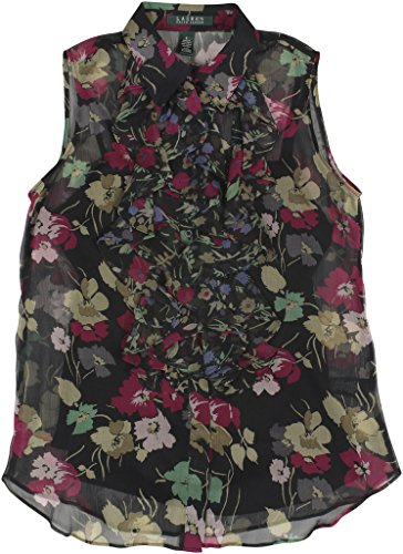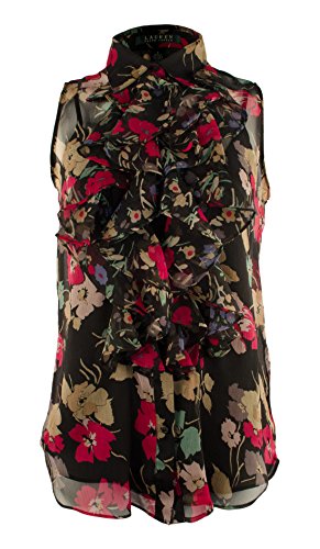 Lauren Ralph Lauren Women's Petite Floral Georgette Top 10P Black Multi