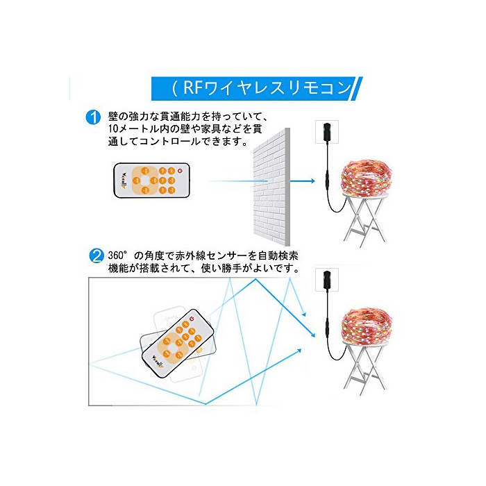원본상품명: Vorally イルミネションライト AC電源付き リモコン付き 10モド点 18段階調光 記憶機能 防水IP65 クリスマスライト