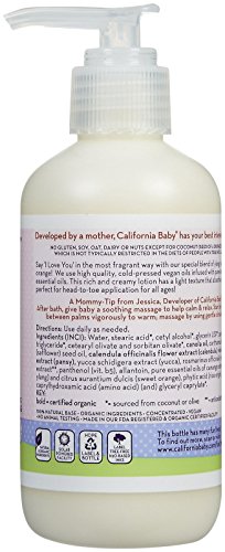 -. Binding : Health and Beauty -. Brand : California Baby -. EAN : 0797978689305 -. Feature : California Baby Everyday Lotion with Pump - I Love You - 6.5 oz / 6.50 oz. -. Label : California Baby -. Manufacturer : California Baby -. Model : 522-6-5 -. MPN : C522-6-5 -. PackageQuantity : 1 -. PartNumber : C522-6-5 -. ProductGroup : Health and Beauty -. ProductTypeName : BEAUTY -. Publisher : California Baby -. Size : 6.5 oz -. Studio : California Baby -. Title : California Baby Everyday Lotion with Pump - I Love You - 6.5 oz -. UPC : 797978689305