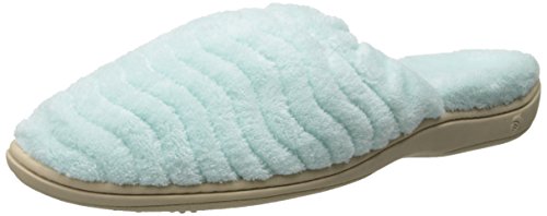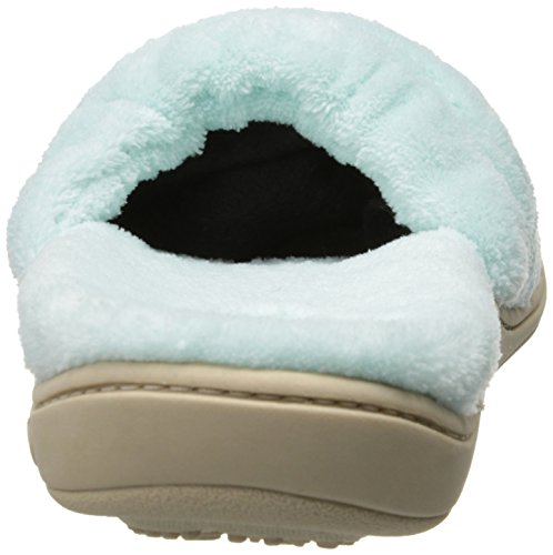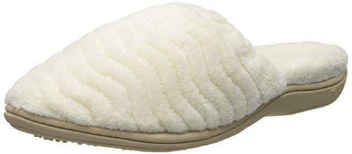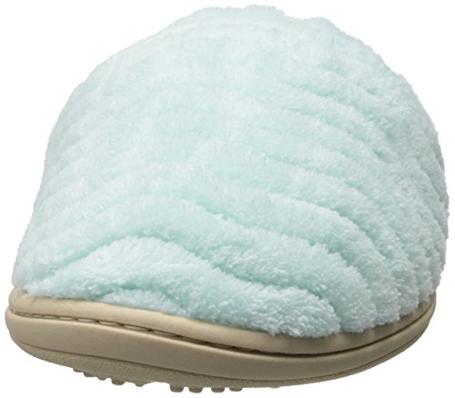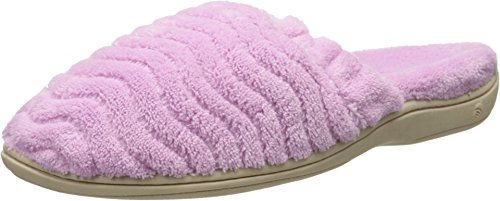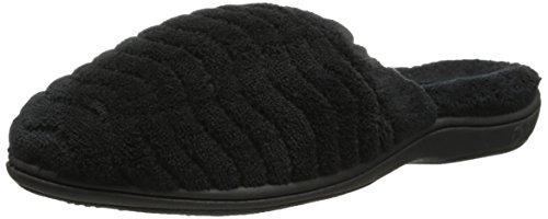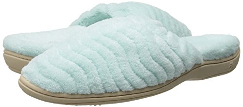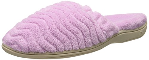 Soft spa terry uppers and linings wrap the foot in comfort. Elastic top band for a secure fit. FirmCore footbed with Dual Density technology delivers firm support at arch and softer cushion at strike zones. Skid-resistant TPR rubber sole. Material: Terry, Rubber.Feature