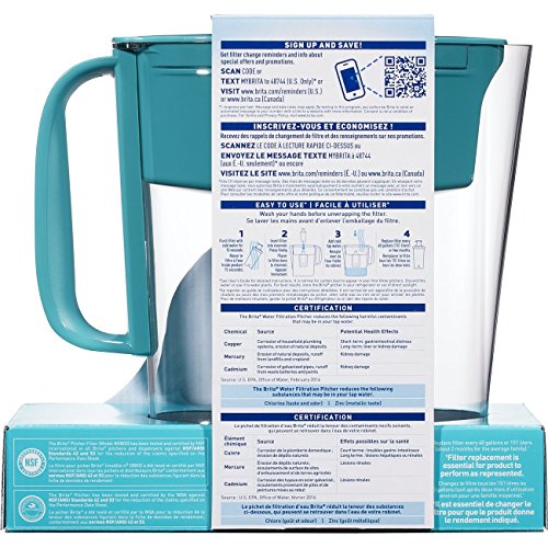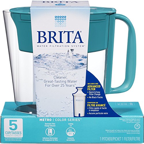 With the Brita 5 Cup Metro Water Filter Pitcher, it is easy to drink healthier, great tasting water. Using technology which combines coconut-based activated carbon with ion exchange resin, the Brita advanced filter reduces the taste and odor of chlorine to deliver great tasting water while removing copper, mercury and cadmium impurities that can cause illness over time. The Brita Metro Pitcher is BPA-free and comes with an electronic filter indicator which notifies you when it is time to replace your filter. Change your filter every 40 gallons or approximately every two months. The small, 5 cup capacity makes this pitcher perfect for kitchen and office refrigerators. Ergonomically designed, this water filter pitcher features a flip top lid for no fuss refilling. By drinking filtered water, you are reducing the amount of plastic bottles that end up in our landfills and oceans. One Brita water filter used equals 300 plastic bottles saved. Start drinking healthier, great-tasting water with Brita today.Feature