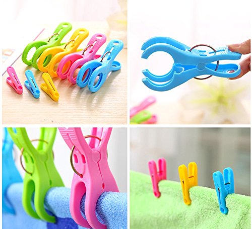 Wowlife Plastic Strong Beach Towel Clips in Fun Bright Colors - Keep Your Towel from Blowing Away, Pack of 3/6/12 (6 Pcs)