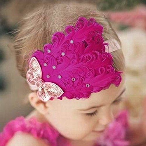 -. Title : Baby Girls Infant Feather Bow Headband Hairband Hairbow