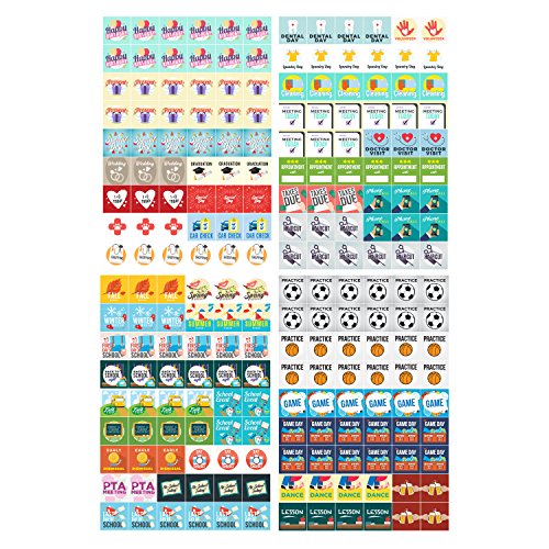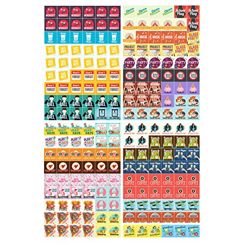 Stickers relating to important event dates with kids, adults, students, college, bills, Christmas, meals, parties, office, workouts, weather, holidays and more!