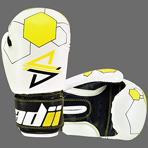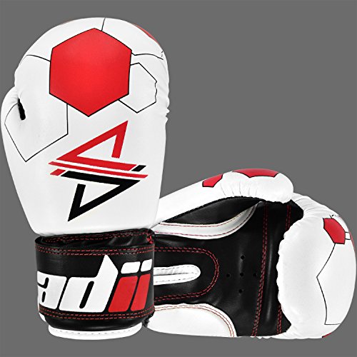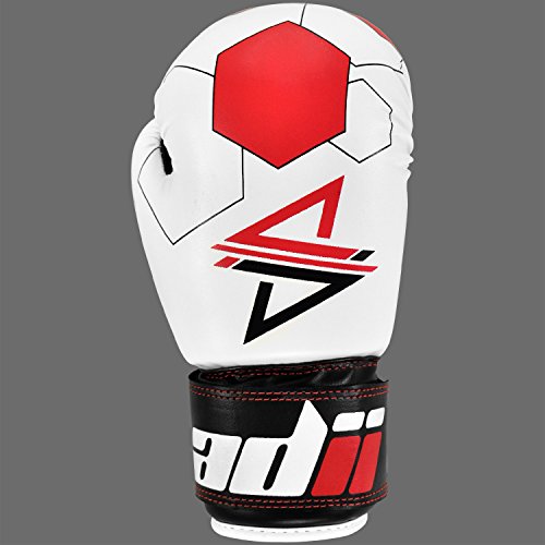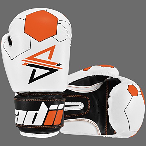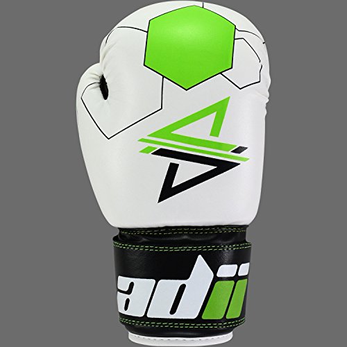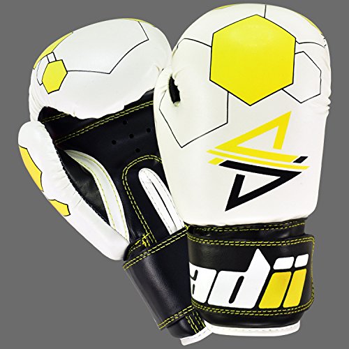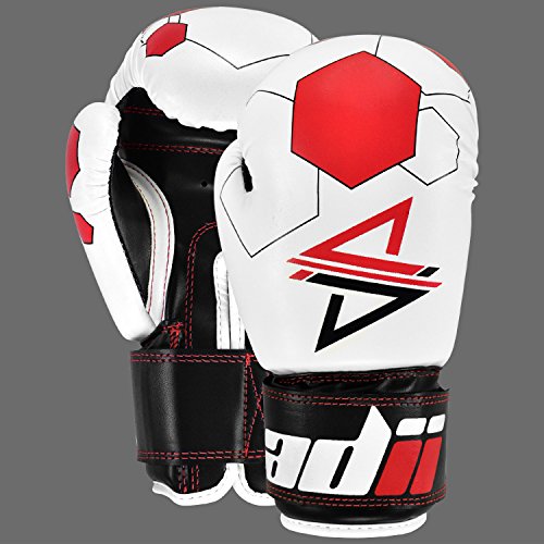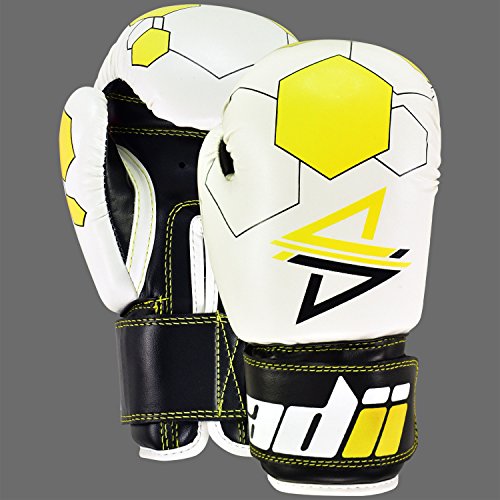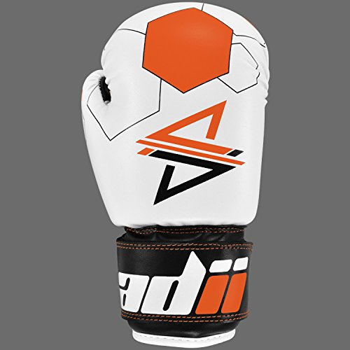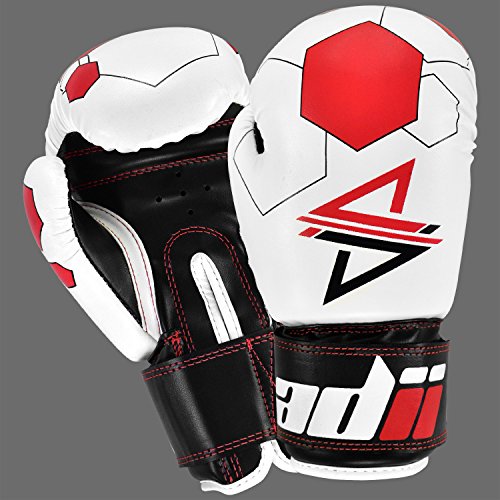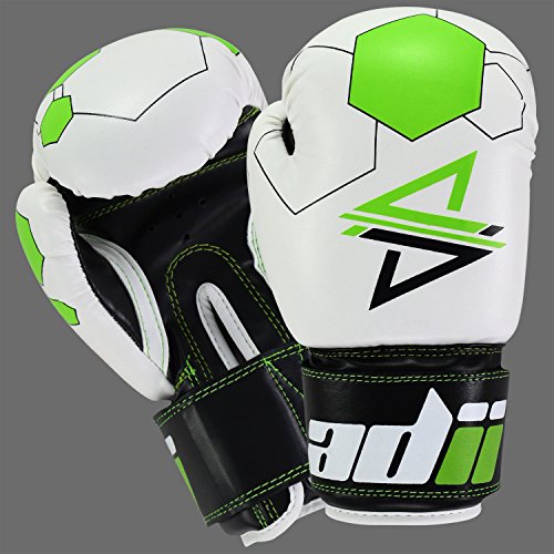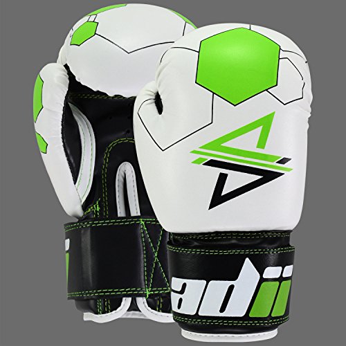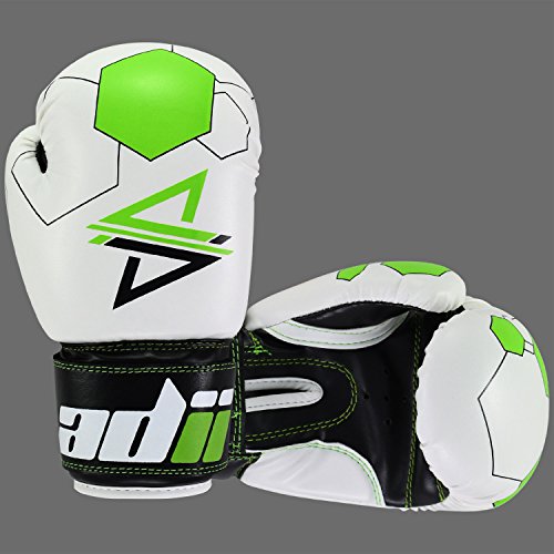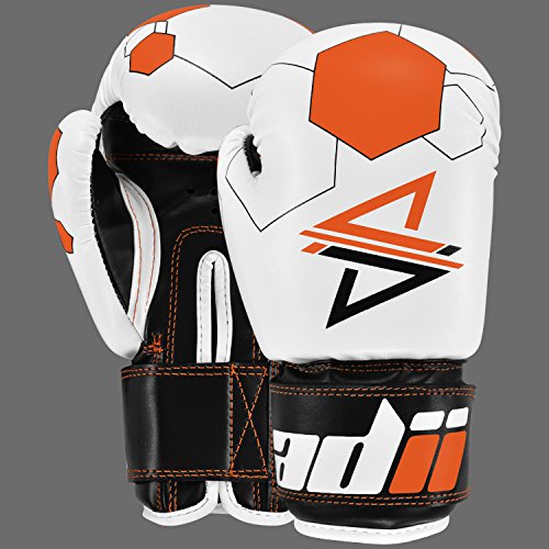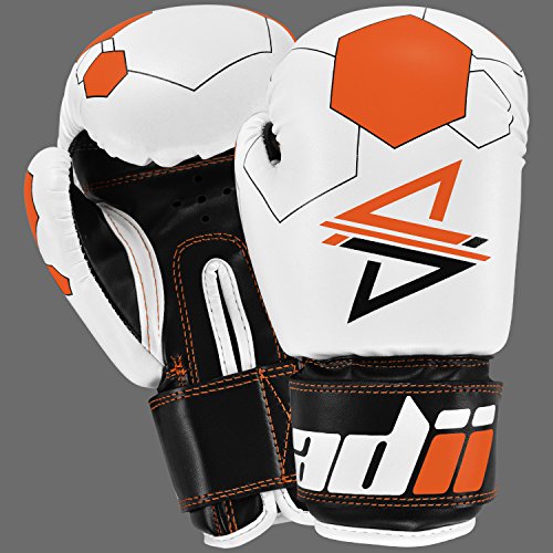 Studio : ADii Boxing Publisher : ADii Boxing Binding : Misc. Product Description ADii Kids Boxing gloves are engineered with Skin-TecTM leather for training and sparring sessions. MPFTM foam padding technology enables the glove to absorb high potency shock during training. Special thick mold aligns perfectly with the hand and equally distributes shock-impact throughout the glove. Keeping in mind the soft skin of the kids, the inner liner of the gloves uses AMTTM (Anti-Microbial treatment) technology to keep the hands moisture free. Child-Friendly Extra-long cuff with full wrist wrap hook and loop closure designed for a snug and customize fit. Cool-ZTM perforated palm technology allows airflow to reduce sweating in the hands. The D-gripTM duct coupled with the anti-thumbing lock ensures proper punching technique to avoid injury from striking. Double reinforced stitching allows the glove to stay live years years. 0