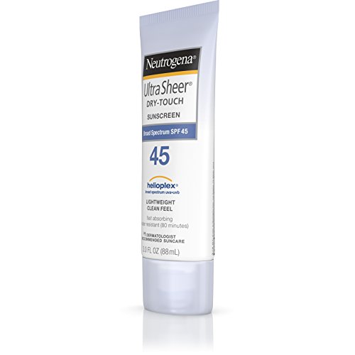 Get powerful sun protection without the heavy finish with Neutrogena Ultra Sheer Dry-Touch Sunscreen. This Broad Spectrum SPF 45 sunscreen lotion with Dry-Touch technology absorbs excess sunscreen oils for a clean, ultra-light feel and shine-free finish. This sunscreen is formulated with clinically-proven Helioplex, an advanced sunscreen technology with superior broad-spectrum protection from skin-aging UVA rays and skin-burning UVB rays. Fast-absorbing and waterproof, this non-oily formula is non-comedogenic and PABA-free.Feature