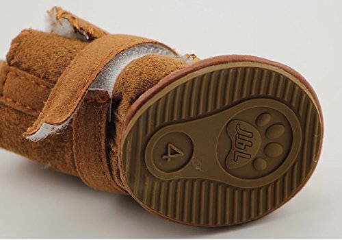-. Feature : Size: #1(4.1*3.5cm), #2(4.7*4.0cm), #3(5.0*4.4cm), #4(5.6*4.7cm), #5(6.2*5.3cm) / There are velvet in the shoes,this may keep the pet sheet warm / The shoes must be 0.5cm larger than the dog's foot / The upper is made of breathable mesh material,so the shoes are soft ,comfortable,skin friendly and cost-effective / It can keep the glass slag,rust nails and other sharp goods away from your dog and it also can protect your pet's feet away from the hurt of high temperature