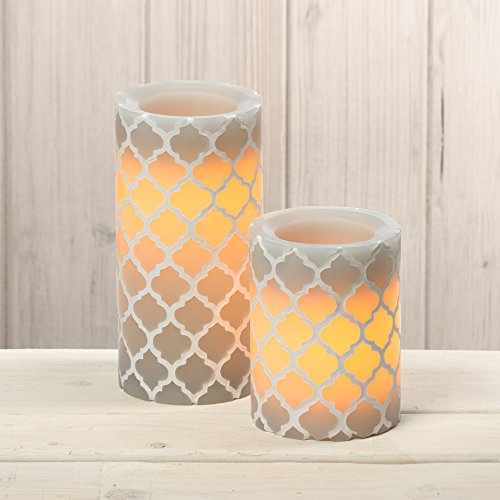 Inglow CGT11849GY Carved Quatrefoil Pillar with 5-Hour Timer, 3 6-Inch, Gray