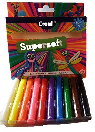 Super Soft not only encourages creativity but also supports the development of fine motor skills. C.reall Super Soft is ideal for young children, seniors or anyone developing hand strength and dexterity as it is easy to knead. It is safe and does not contain gluten. This modeling material will not dry out, and can be used time and time again. This assortment includes ten 120 gram eachof 10 bright colors in a box with a hang tag.Feature