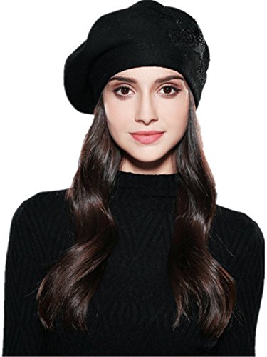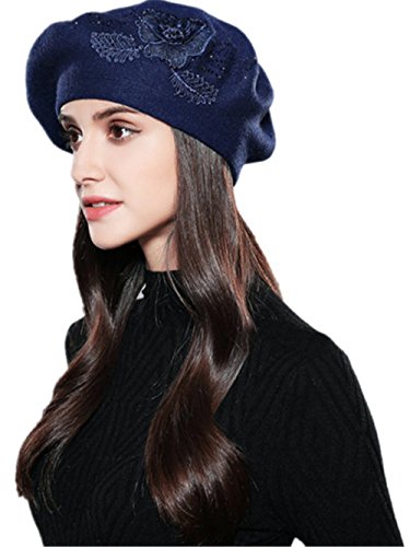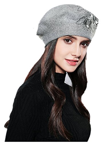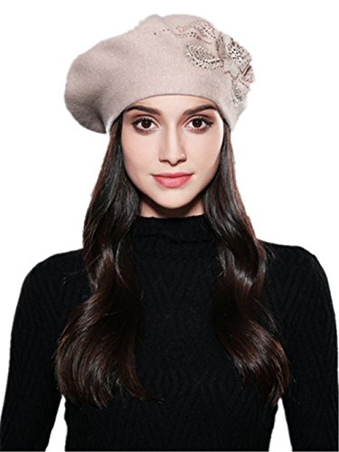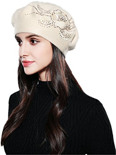 Women Beret Elegant Flower Rhinestones Autumn Winter Rabbit Wool Knitted Female Hats Caps
