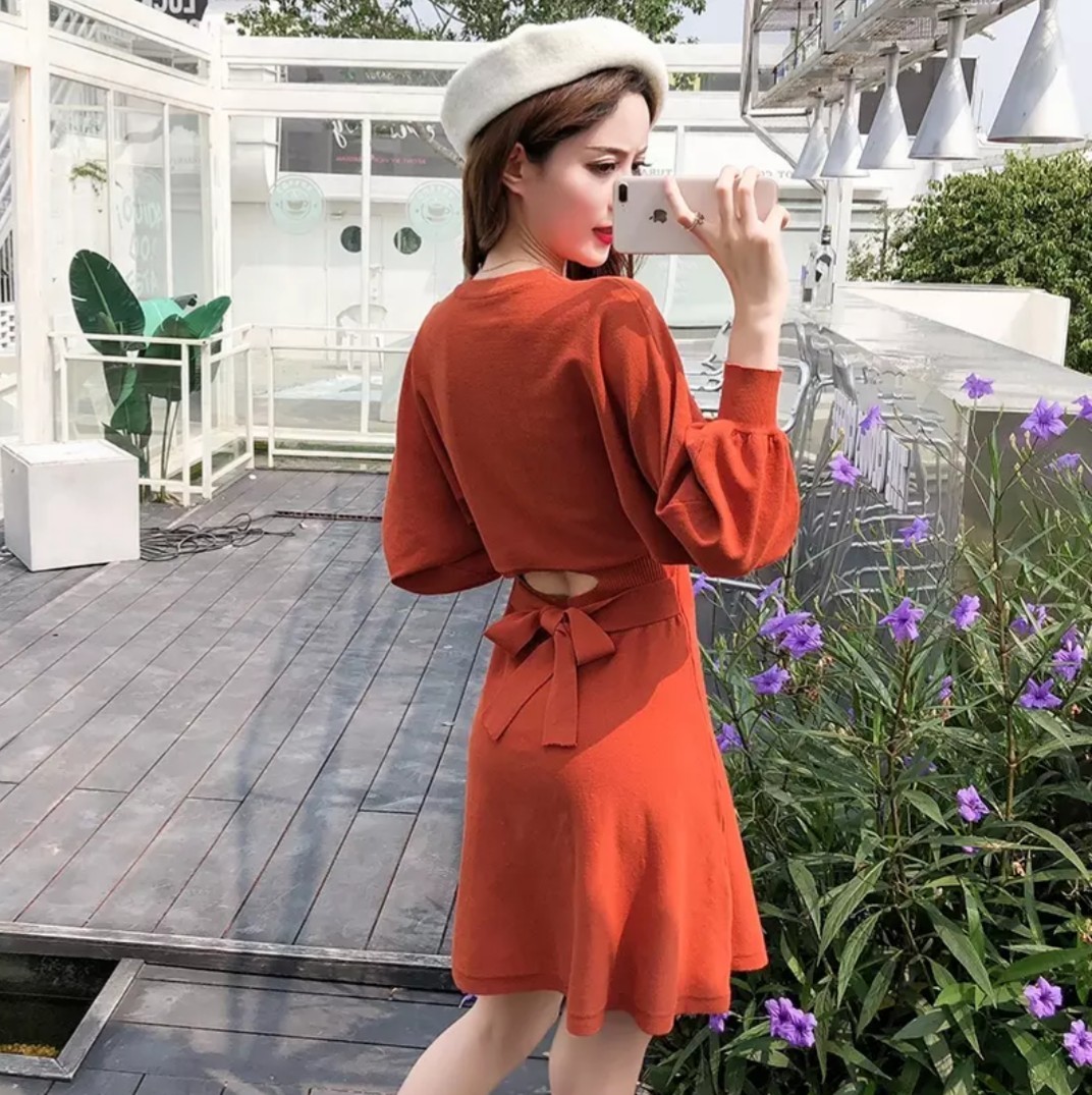 ウエストバック部分の開きと、リボンがおしゃれな1枚です♪