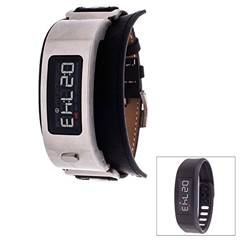 Includes Adjustable Black Genuine Leather Cuff Strap with Stainless Steel Case in Brushed Silver. The Leather Cuff can be removed for a simpler, thinner leather band