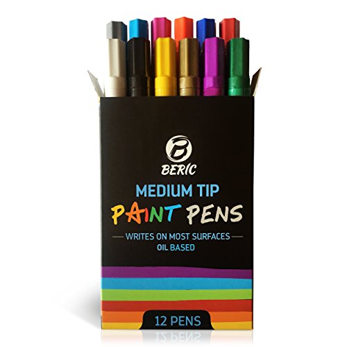Premium Paint Pens by Beric 12 pack, Oil-based Paint Marker, Medium Point, Writes on Almost Anything, Water and Sun Resistant Vibrant Colors Low Odor Long Lasting Fast Drying Assorted Colors