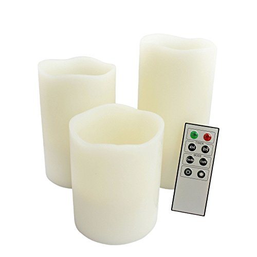 Candle Choice D70RW31456M Round Melted Edge Remote Controlled Flameless Wax Pillar Led Candle, Made with Real Wax, 3 Piece