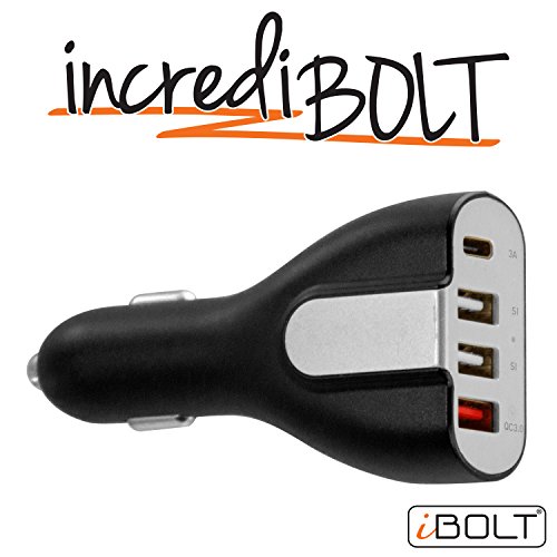 -. Feature : The iBOLT incrediBOLT 4-port car charger perfect for charging multiple devices. Suits all your charging needs with multiple different charging ports. Charge up to 4 devices at once! / SPECS: Input: DC 12V-24V , Output 5V/10A- USB-C port output is 3A , (2) USB-A output is 2A each, and Qualcomm Quick Charge 3.0 output is 2A at the "quick charge" rate / COMPATIBILITY: Compatible with all smartphones, tablets, and portable devices, such as, iPhone 8 / 8 plus / X (10) / 7 / 7 plus / 6 plus / 6s / 6 / 5s / 5c / 5, Samsung Galaxy S8 / S7 / S6 / S5 & Note 4 / 5 / 8, HTC's, LG's, Nexus, Motorola & Sony phones , iPad , iPad Pro , Nexus , Sony Xperia , Kindle , Samsung Galaxy Tab. / Integrated LED light that confirms charging connection.