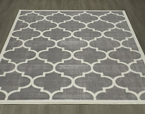 Sweet Home Stores Clifton collection light grey Moroccan trellis design (7'10"x9'10") area rug. Design: Moroccan trellis. Inherently stain, fade and wear-resistant for fuss-free maintenance.