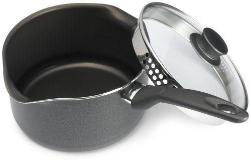 Bialetti's 2 quart covered sauce pan is designed for everyday convenience. The Italian Collection offers simple, high utility designs that make cooking an enjoyable experience and comes with an assurance of quality and durability thanks to its superior 3.2mm gauge aluminum construction. The glass lid features a pour spout for convenient straining of water from vegetables and pasta. Extra-long soft-touch handles for easy and comfortable handling. Handles are heat resistant and feature a stainless steel accent. Double layer non-stick interior for added durability makes sauce pan easy to clean. The base of the sauce pan is designed to conduct heat quickly and evenly. Bialetti's Italian Collection cookware is suitable for use with all conventional stove tops; including electric, gas, ceramic and glass. Bialetti cookware is safe to use with nylon, silicone or wood utensils. Do not use metal utensils on the nonstick cooking surface. Not for use on induction cooktops or in the oven. Bialetti cookware is dishwasher safe. For best results, hand wash with non-abrasive cleansers and liquid dishwashing soap. Bialetti began in Italy, but has become a leading brand around the world for its high-quality products bringing simplicity, functionality and beauty to the kitchen. Bialetti's advanced technology and distinctive styling combine to create cookware that's simple to use and simply beautiful. Bialetti is authentically Italian, where the kitchen is the heart of the home.Feature