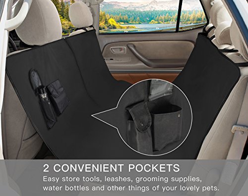 Studio : SHINE HAI Publisher : SHINE HAI Binding : Misc. Product Description Keep Your Seat Clean SHINE HAI Dog Seat Cover is designed with water-resistant oxford fabric to keep mud, dander and hair off of car seats, provide enough thick resistance against dog's nails and paws, keep your backseat clean and dry while your dog could enjoy the freedom on your car. Pockets Zippers There are 2 pockets for convenient store of dog leashes, toys, grooming brush or water bottles. Reinforced double zippers allow easy access to your lovely pet and use another half of the car to enjoy the happy time with your pet during riding. 100% Waterproof 600D Oxford fabric and PVC material, the dog car seat cover is 100% waterproof, withstand all the stains and liquids. Easy to Use Simply snap the buckle straps around the backseat headrests to hold it in place. Adjust the reinforced headrest straps to tailor the fit to your back seats. For the hammock feature, just snap the bottom buckle straps to the front seats headrests. Product Specifications Color: Black Weight: 2.2 lbs Size: 54" x 58" Material: 600D Oxford Fabric