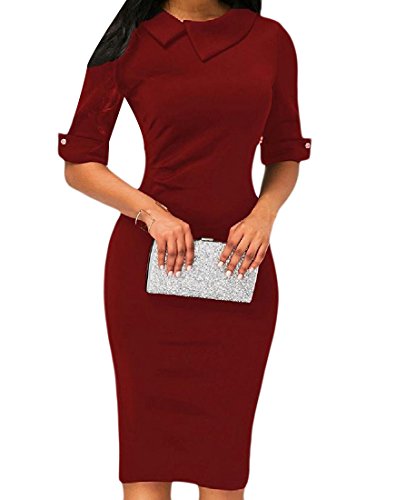 -. Title : Tootess 女性ol固体色のレトロなスタイルのトリムフィットハーフスリーブドレス