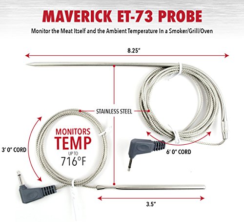 6-Foot Meat Thermometer Probe AND 3-Foot Replacement Grill or Smoker Probe Only for Maverick ET-73