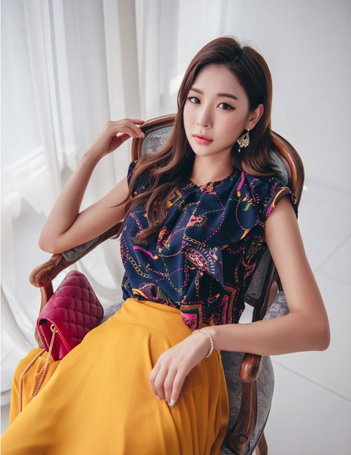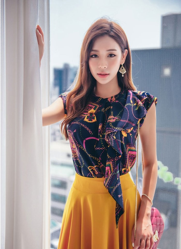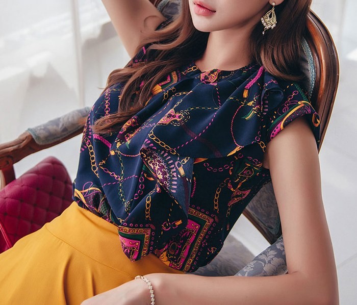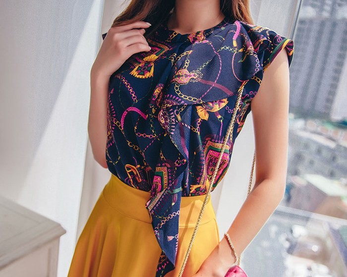 商品名:ブラウス プルオーバー 柄 ノースリーブ