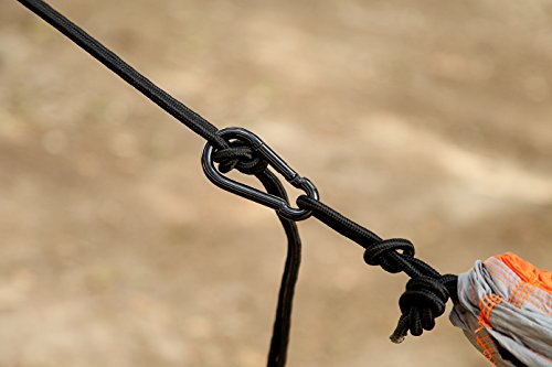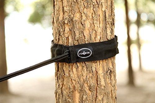 Ultralight and compact, the hammock weighs 19 oz – with easy to set up steel carabiners, nautical grade ropes and tree friendly rope sleeves. Straps wouldn’t mark on trees.
