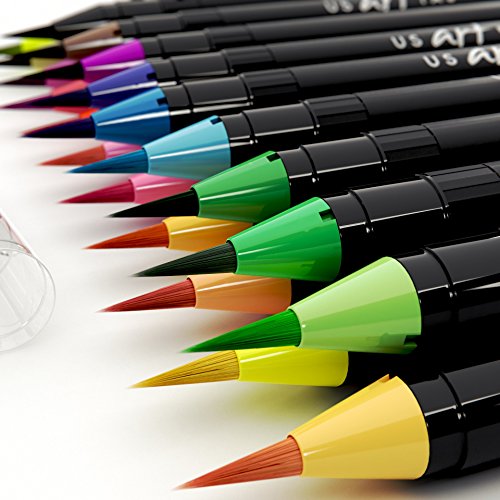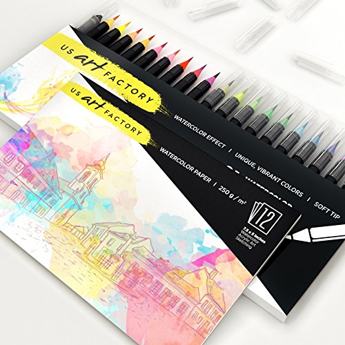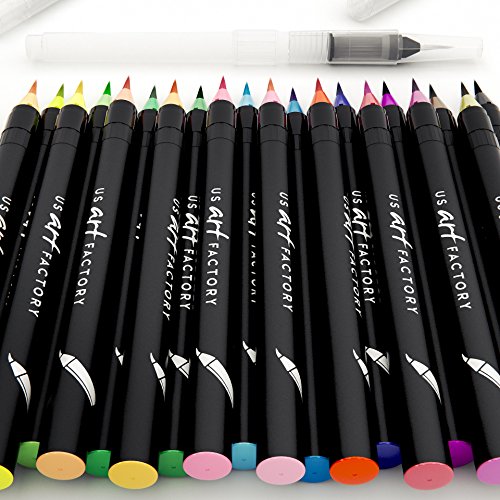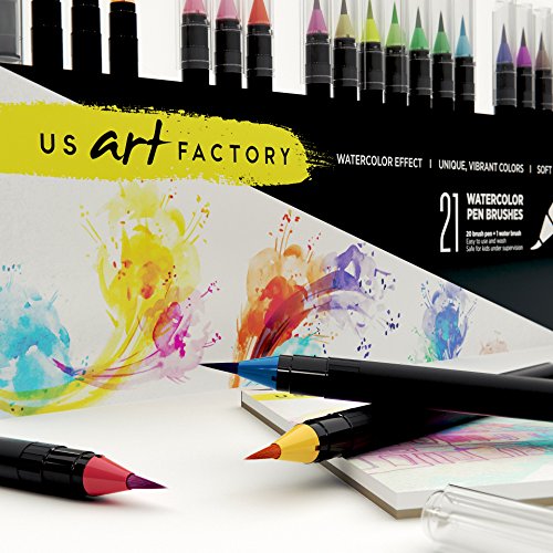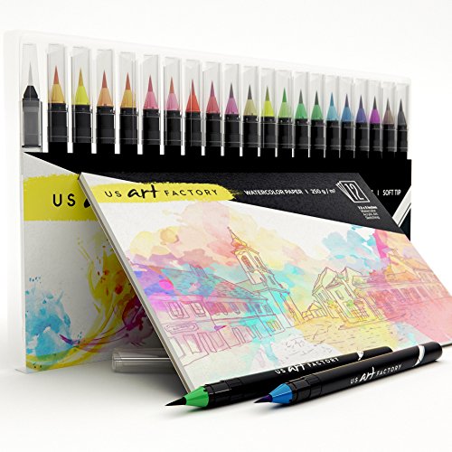US Art Factory Watercolor Markers – Brush pens with Soft, Flexible Tip | BONUS Watercolor Paper Pad | 20 Vibrant Color Brushes For Painting & Lettering | BONUS E-book and Practice Sheets